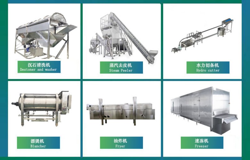 我公司生產的5噸薯條生產線設計工藝完全按照歐洲法式薯條的制作工藝和流程為標準進行設計,達到了歐洲工藝和質量標準。具備產量大、作業連續化、控制自動化等特點。主要由清洗設備、蒸汽去皮設備、水力切條設備、漂燙設備、脫水設備、油炸設備、速凍設備、包裝設備等組成。